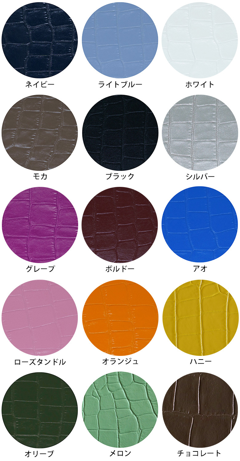 カラーの選択は「表面カラー(クロコ型押しレザーのみ)」「内面カラー(シュリンクレザーのみ)」がお選びいただけます。