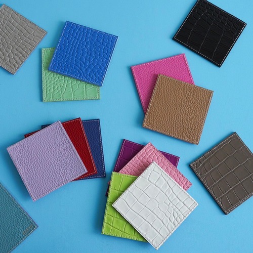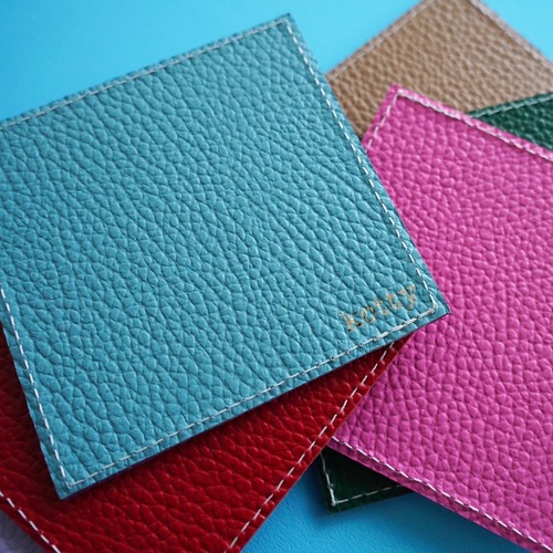 クロコ型押しレザーとシュリンクレザー。 質感の異なる2種類のレザーを組み合わせ、裏表それぞれお好きなカラーを選べる特別なコースターが完成しました。 全31色の豊富なカラーバリエーション。 その日の気分や食卓の雰囲気に合わせて自由にお使いいただけます。 サイズは使いやすい正方形。 グラスやカップを置くだけで、テーブルまわりがさりげなく華やぎます。 ご自宅用にはもちろん、大切な方への贈り物にもおすすめです。 さらに、オプションで名入れ加工も可能。(※シュリンクレザーのみ対応) ※両面シュリンクレザーの場合は表面に入ります。 【サイズ】 9cm×9cm 【素材】 牛革 クロコ型押しレザー、シュリンクレザー(自由に組み合わせ出来ます) 【オプション名入れ】 1個:550円 ゴールド or シルバー 大文字、小文字、.(ドット) が入力できます(8文字まで) ※名入れはシュリンクレザーのみ 両面シュリンクレザーの場合は表面カラーに名入れとなります。 ※ すべて職人手作りで仕上げておりますので若干の個体差が生じる場合があります ※ 予告なく色の変更、追加があります ※ 通常、お届けはご注文日より10日前後(土日祝除く)となります。なお、ご注文が集中した場合やイベント時期などは、通常よりお時間をいただく場合がございます。あらかじめご了承くださいませ。 ※ オーダーが集中した場合は一旦オーダーをストップする場合もございます